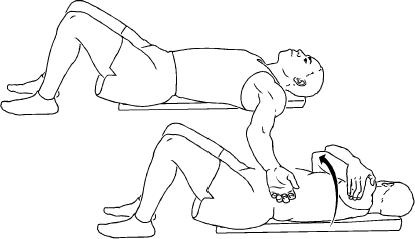 Lie on back on flat side of roller. Grasp upper back with crossed arms. Roll to one side, pulling scapulae apart.