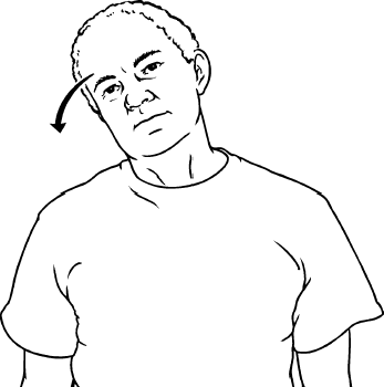 With head in comfortable, centered position and chin slightly tucked, gently bring right ear toward right shoulder.