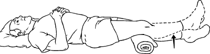 Lying on back with rolled towel (about 6 inches wide) under knee, slowly straighten knee to fully extended position. Hold ____ seconds, then relax. Repeat with other knee.