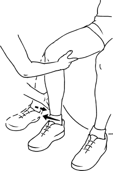 Sit, feet flat. Lift right leg slightly and, against resistance, move