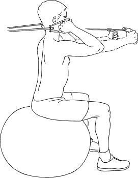 upper arm parallel to floor. Straighten elbows forward. Anchor behind, ear level.